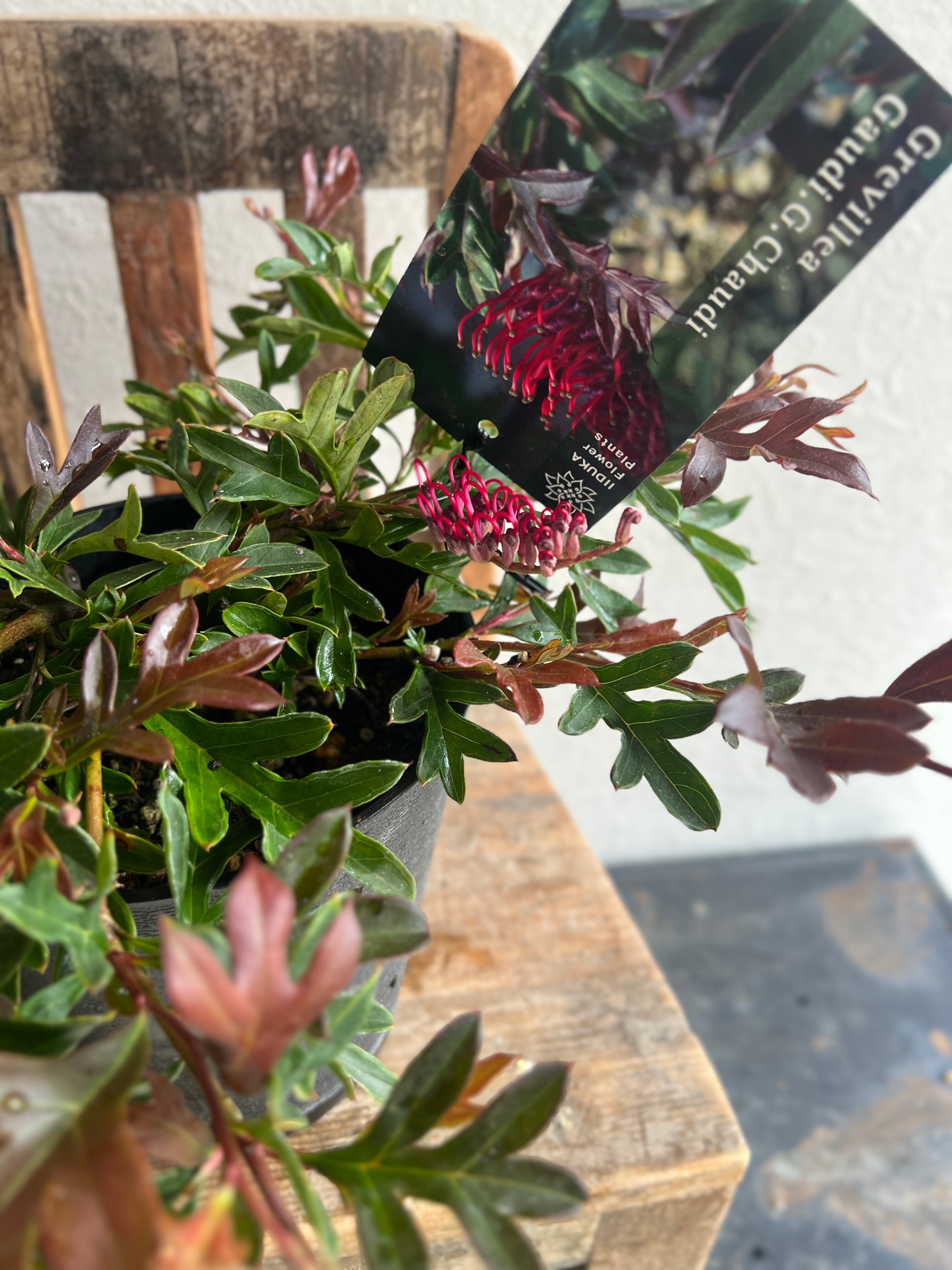 暗めの葉っぱと真っ赤な花がワイルドでかっこいいグレビレア!