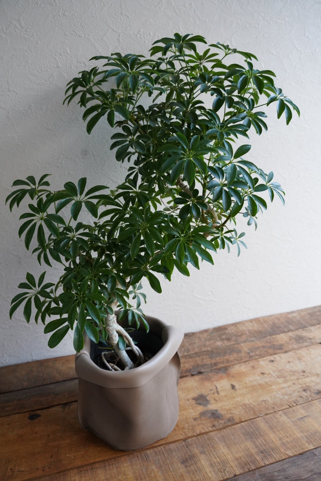通常のシェフレラよりも葉や背丈が小さくなる、矮性(わいせい)品種です。省スペースで育てられます。