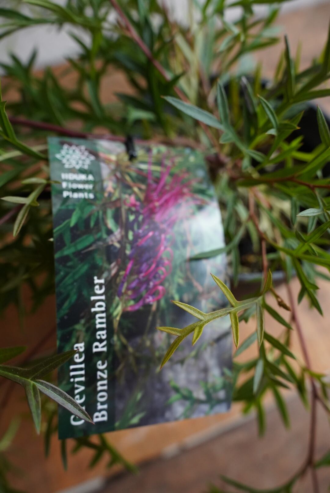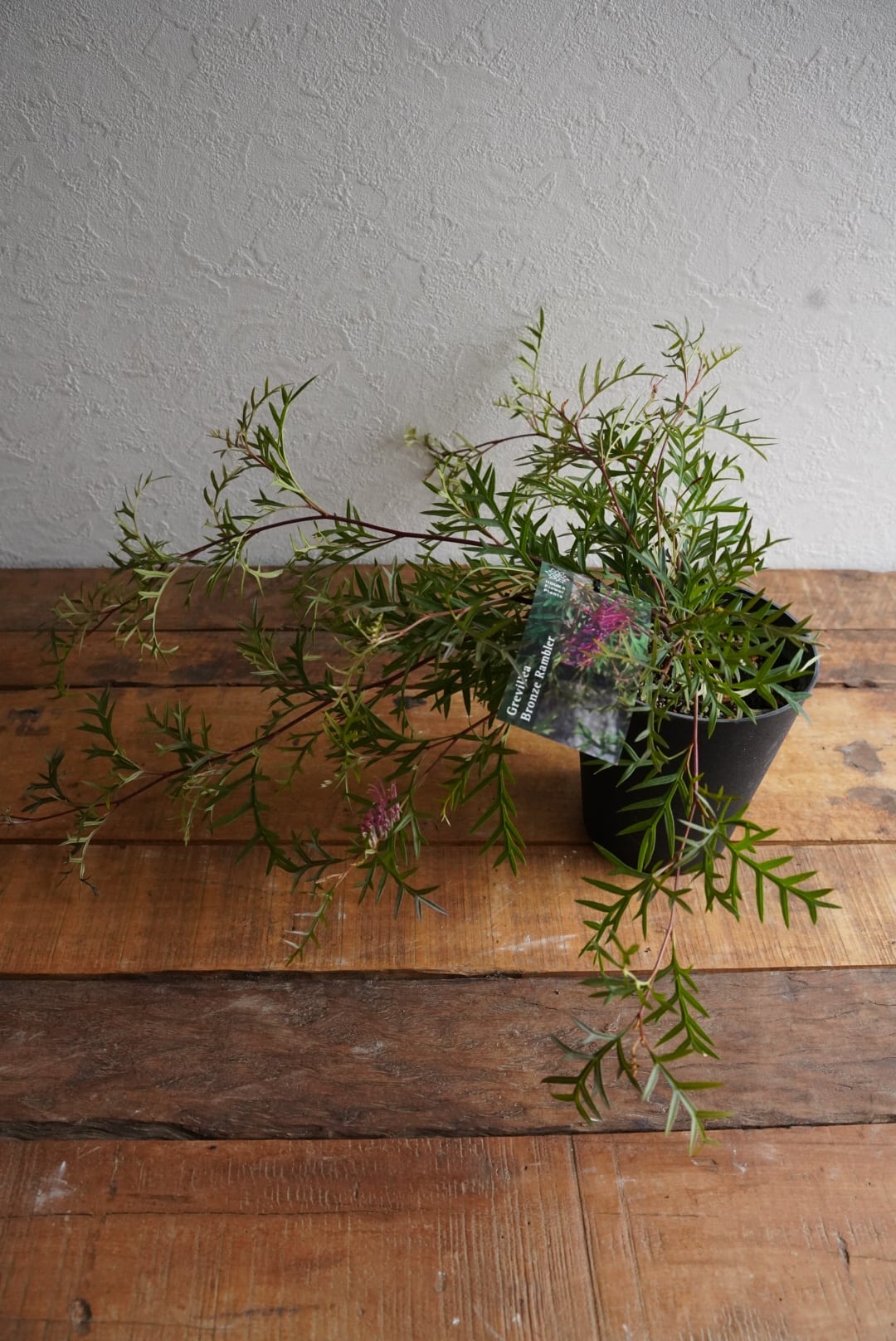 暗めの葉っぱと濃いピンク色の花がかっこいいグレビレア!