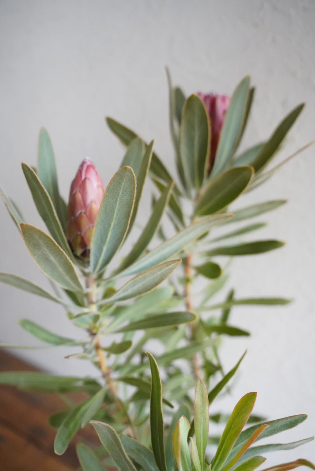 ふわふわとした高級感のある花と、シルバーがかった美しい葉っぱが魅力のプロテア!