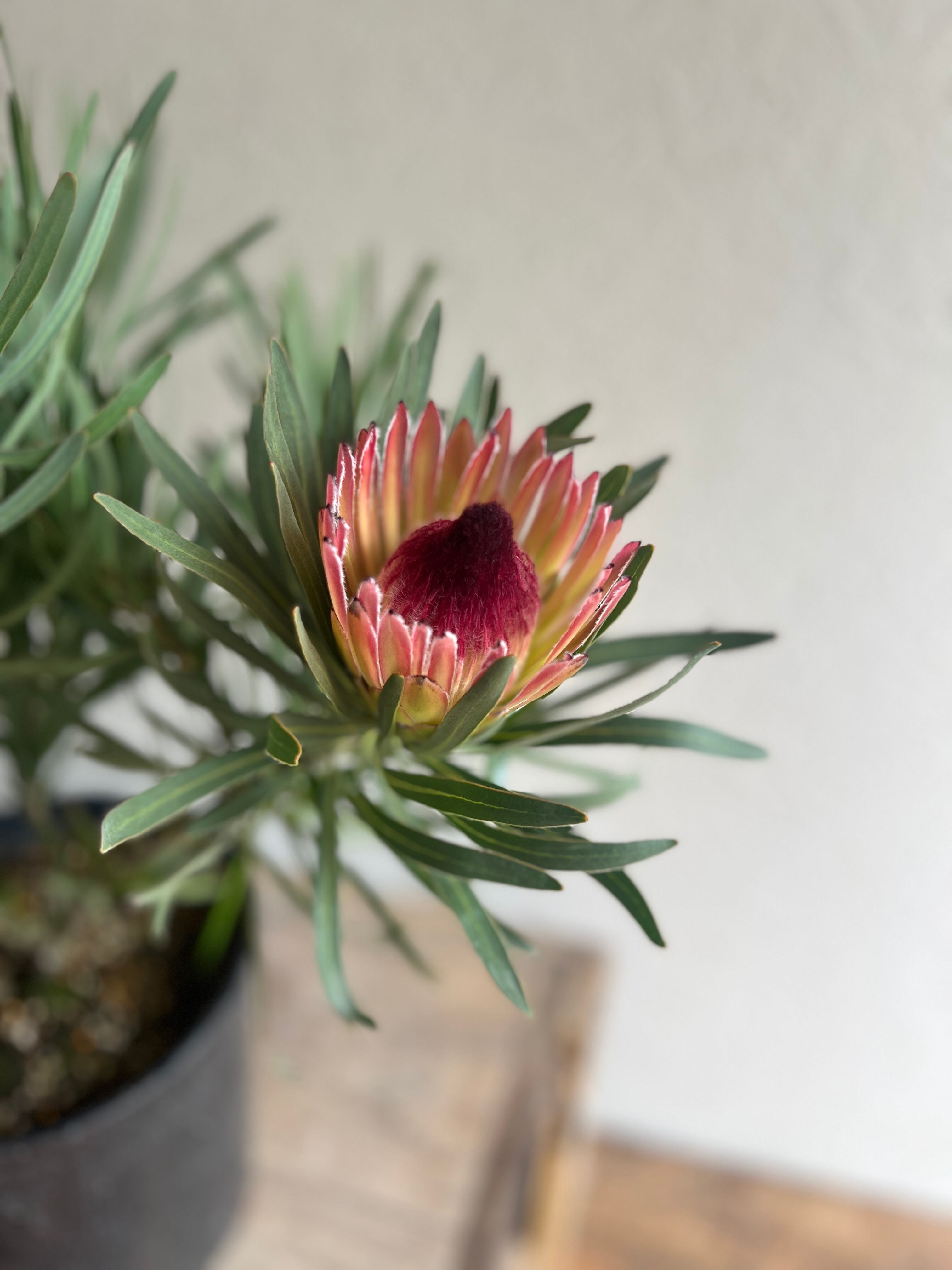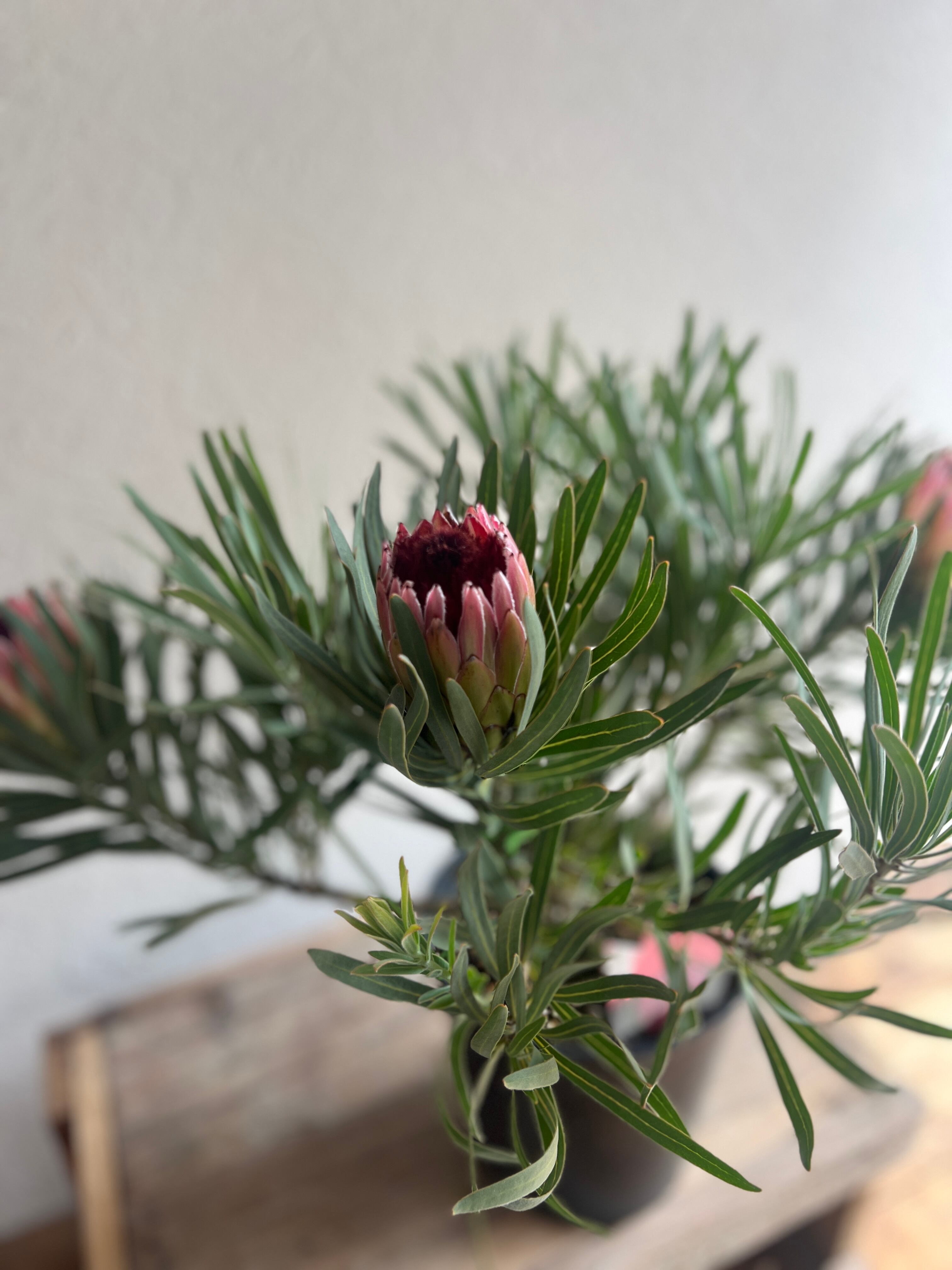 シュッとしたピンク色の花が咲くプロテア。