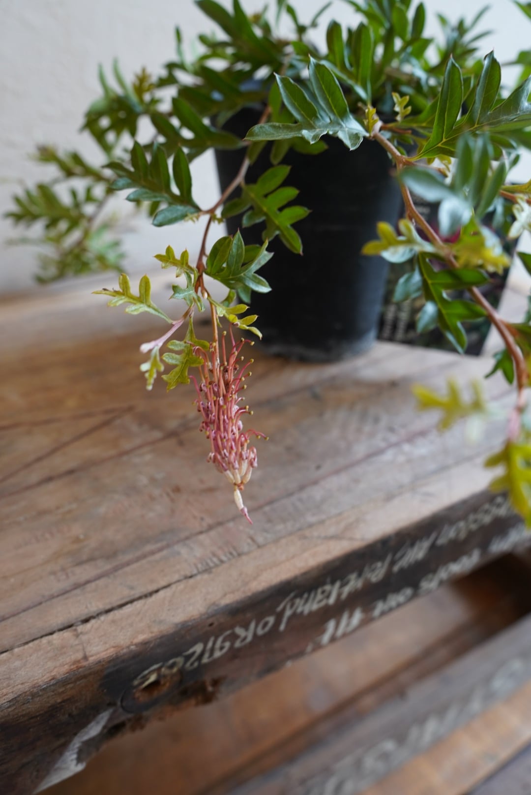 暗めの葉っぱと真っ赤な花がワイルドでかっこいいグレビレア!