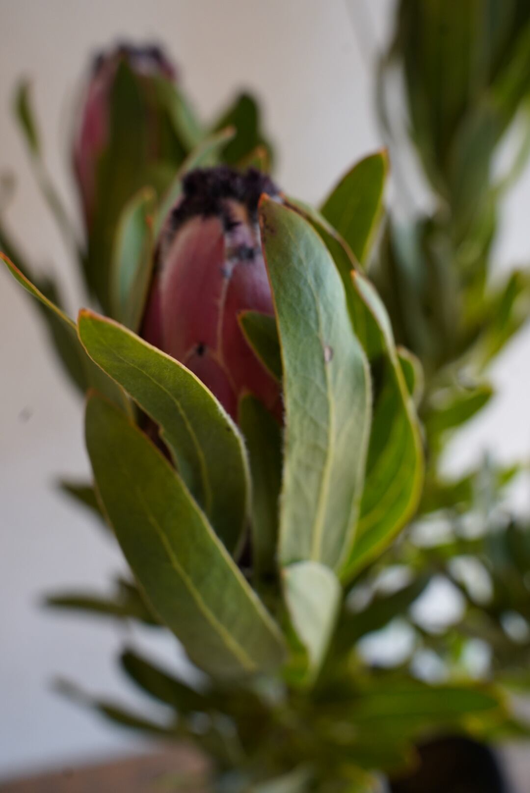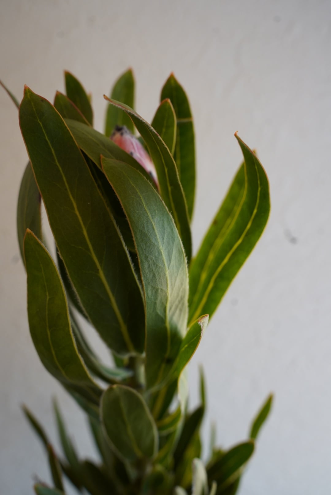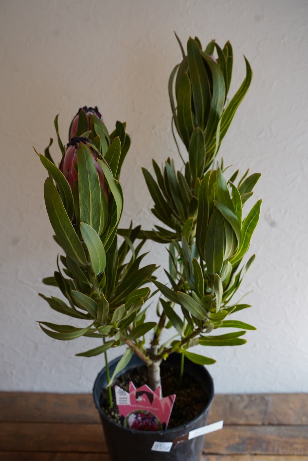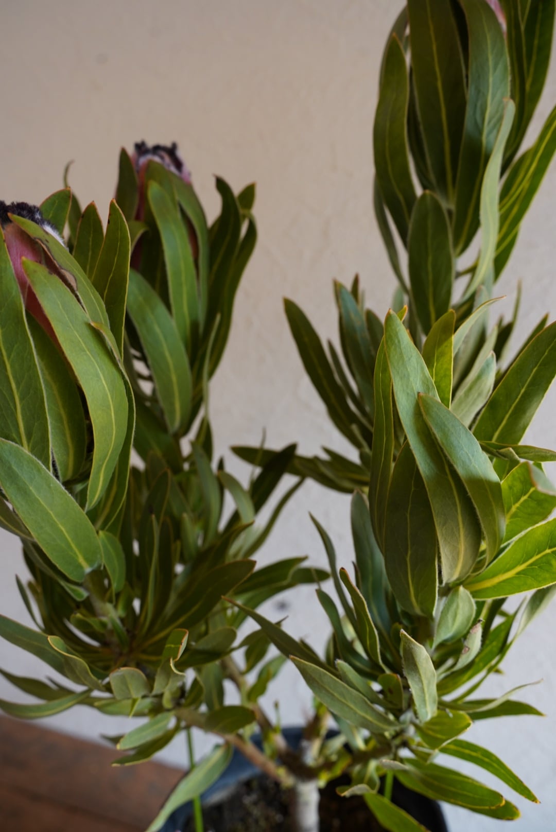 ピンク色のふわふわとした高級感のある花が咲くとても珍しいプロテア。