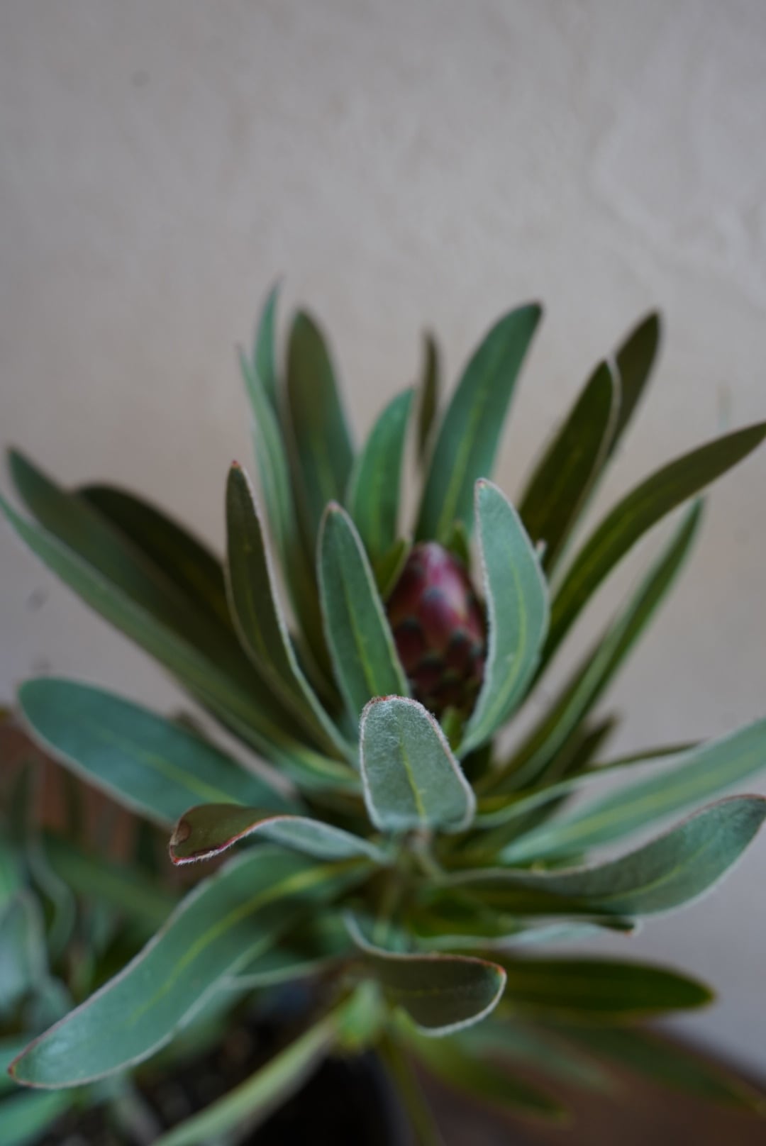 ピンク色のふわふわとした高級感のある花が咲くとても珍しいプロテア。