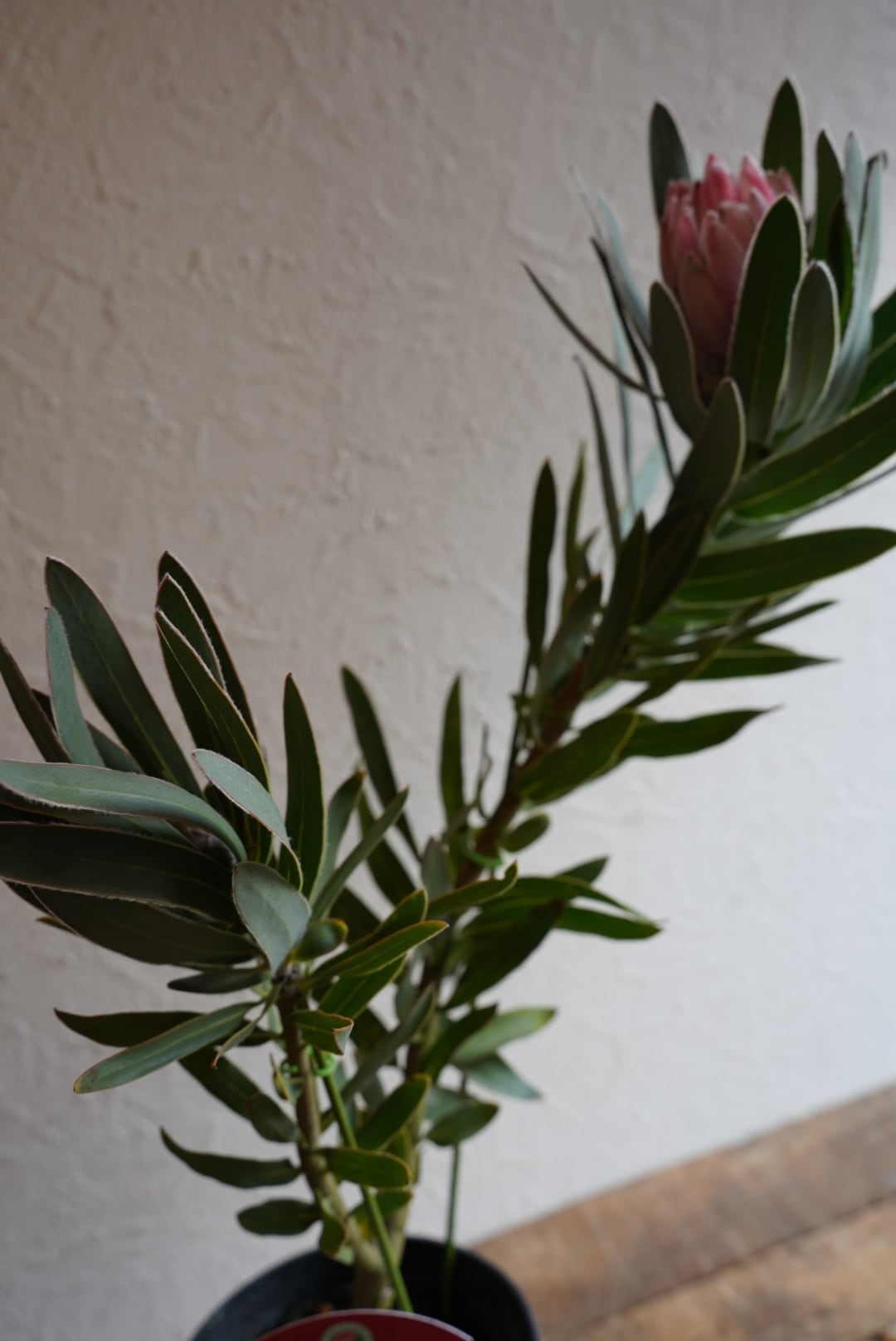 ふわふわとした高級感のある花と、シルバーがかった美しい葉っぱが魅力のプロテア。