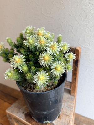 ケモケモした葉っぱが特徴で、枝の先に可愛い白い花が咲く。