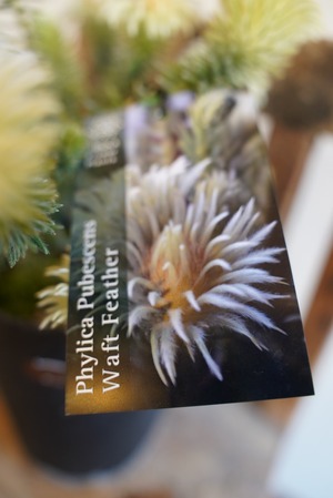 ケモケモした葉っぱが特徴で、枝の先に可愛い白い花が咲く。