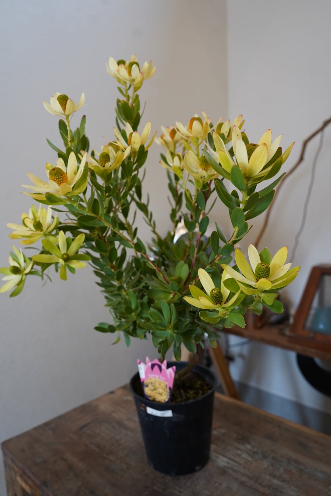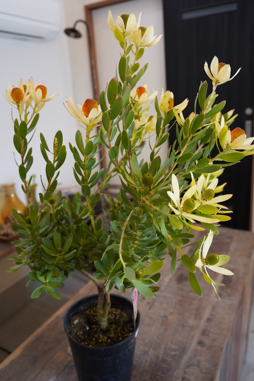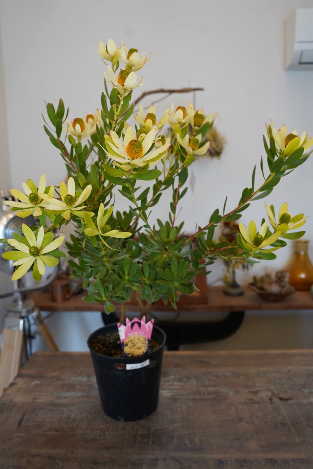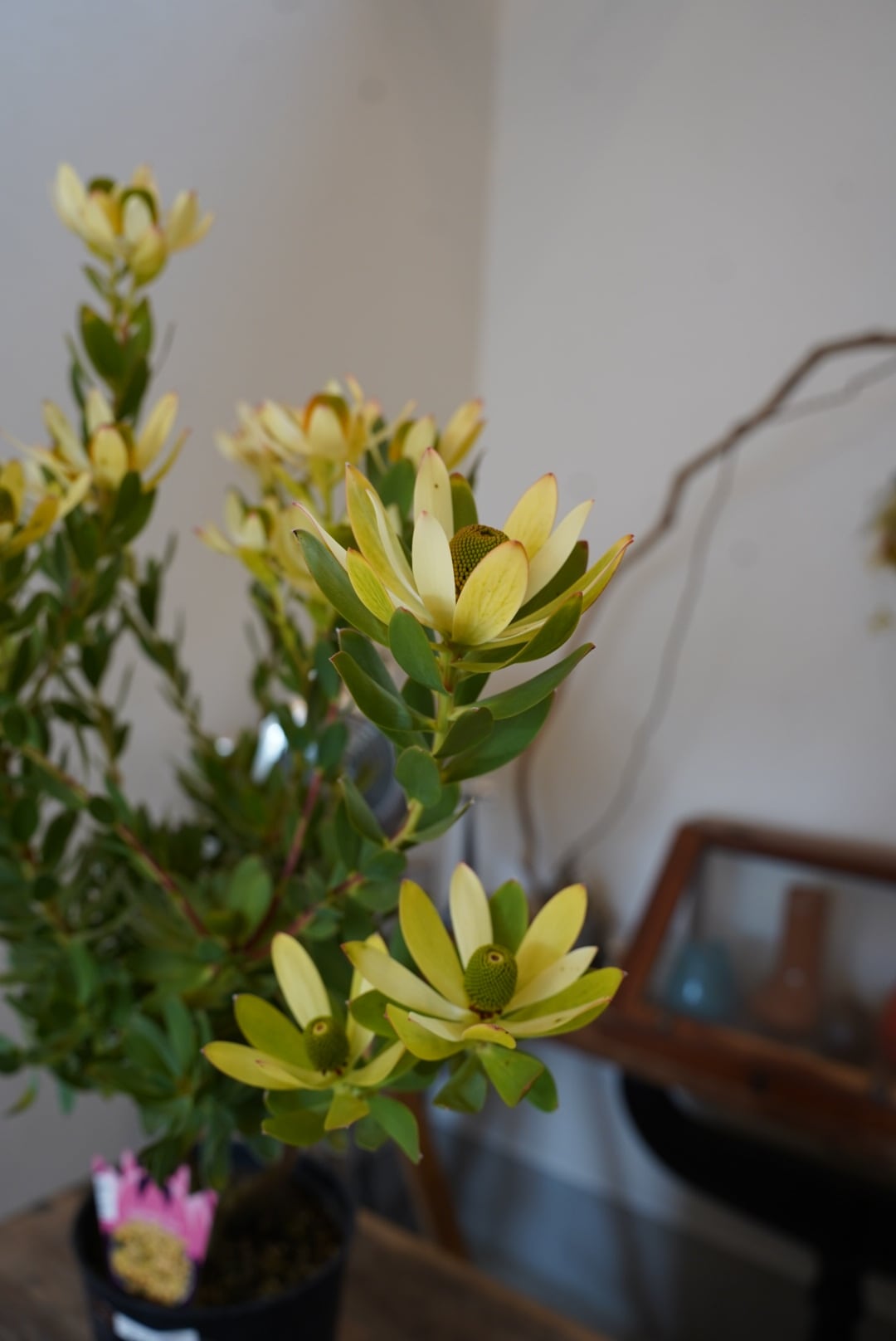 黄色い大輪の花を咲かせる可愛いリューカデンドロン。