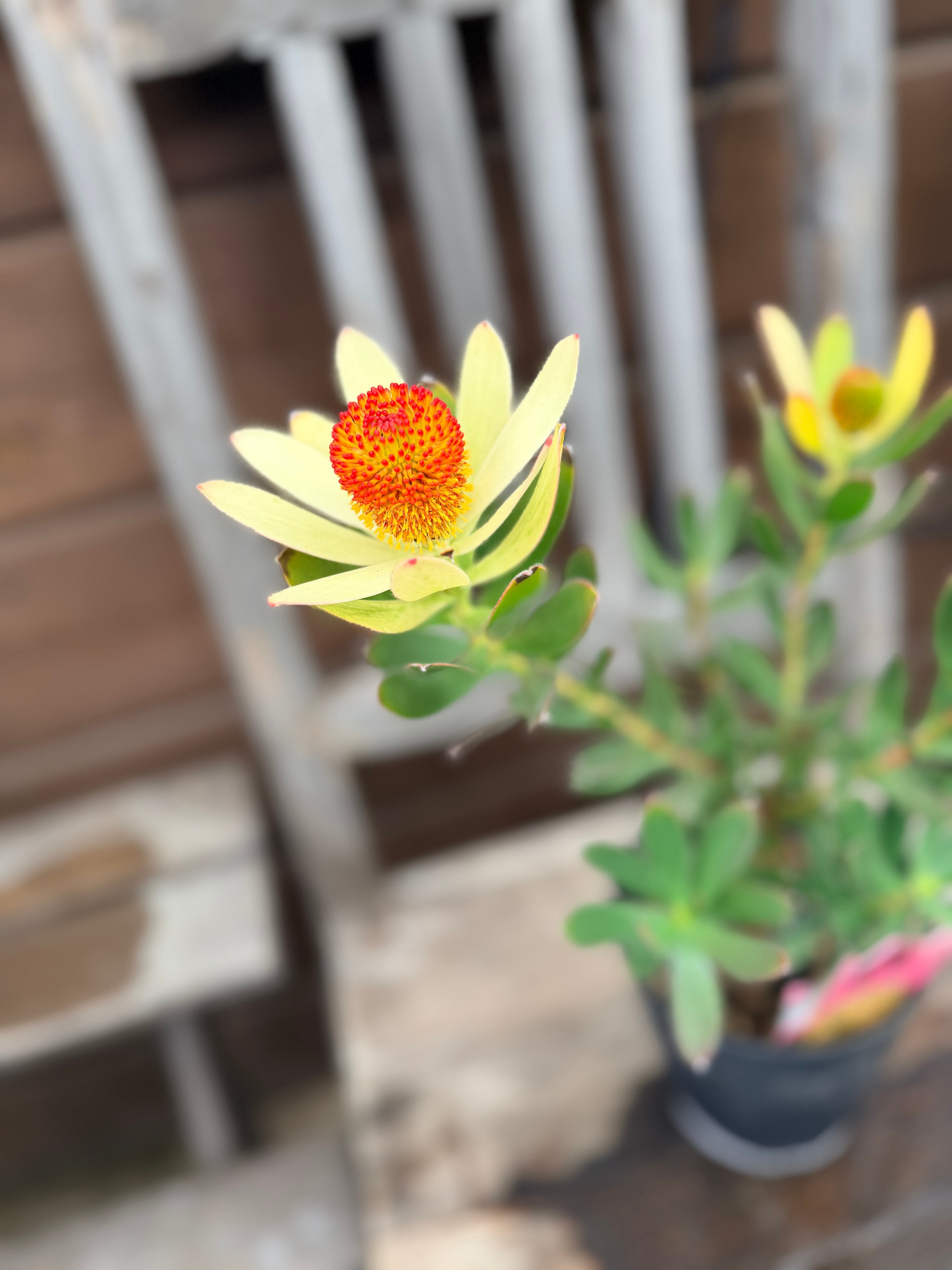 黄色い大輪の花を咲かせる可愛いリューカデンドロン。