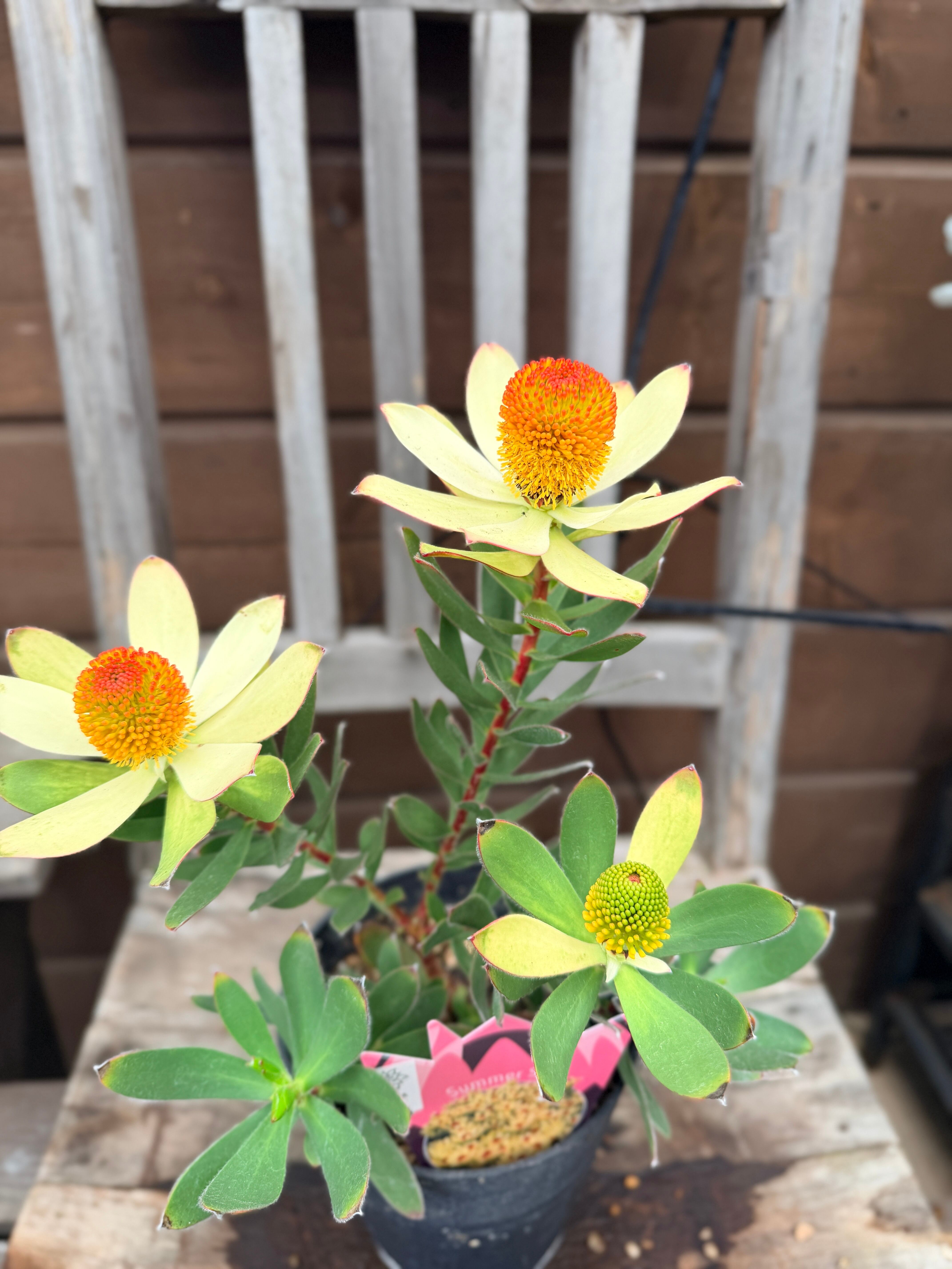 黄色い大輪の花を咲かせる可愛いリューカデンドロン。
