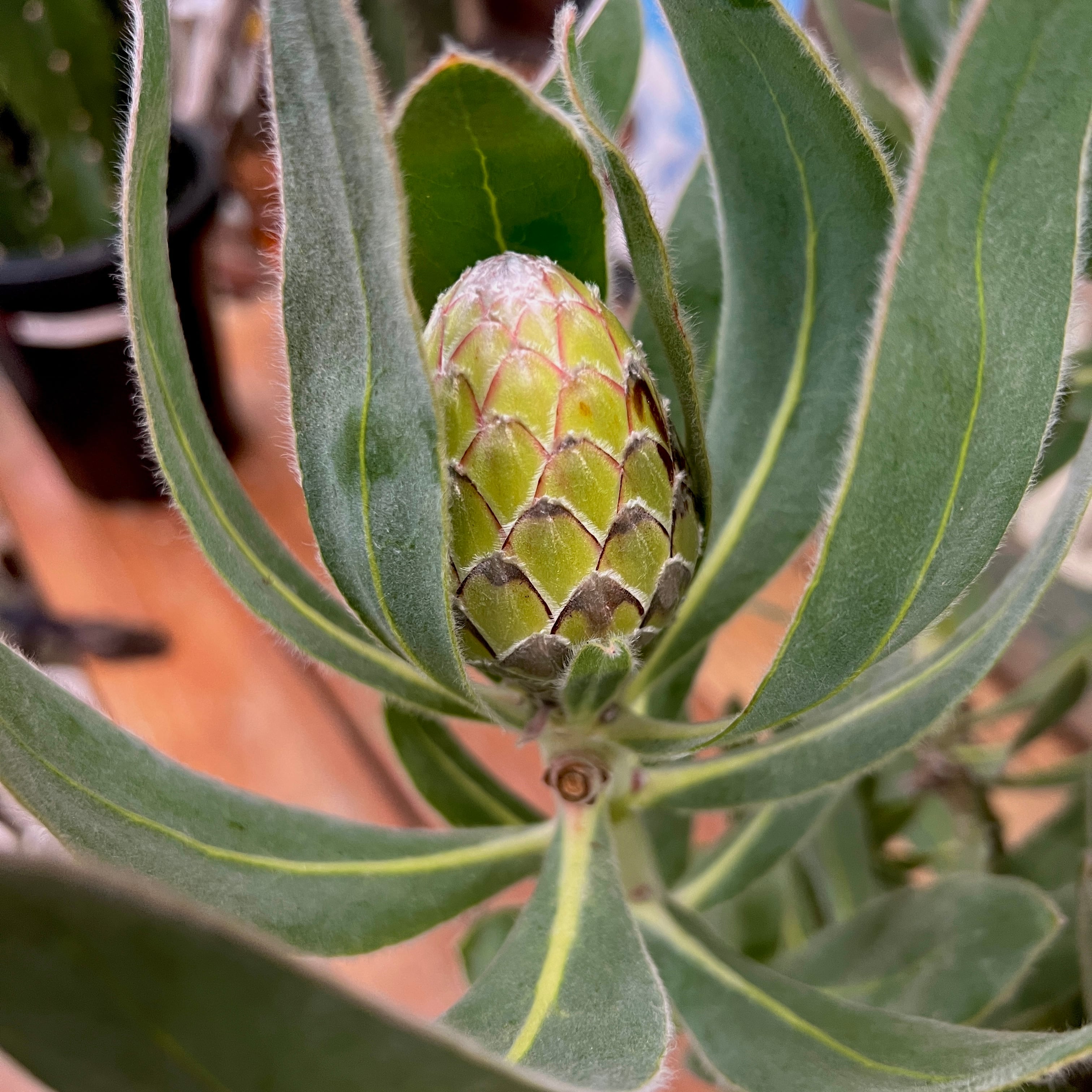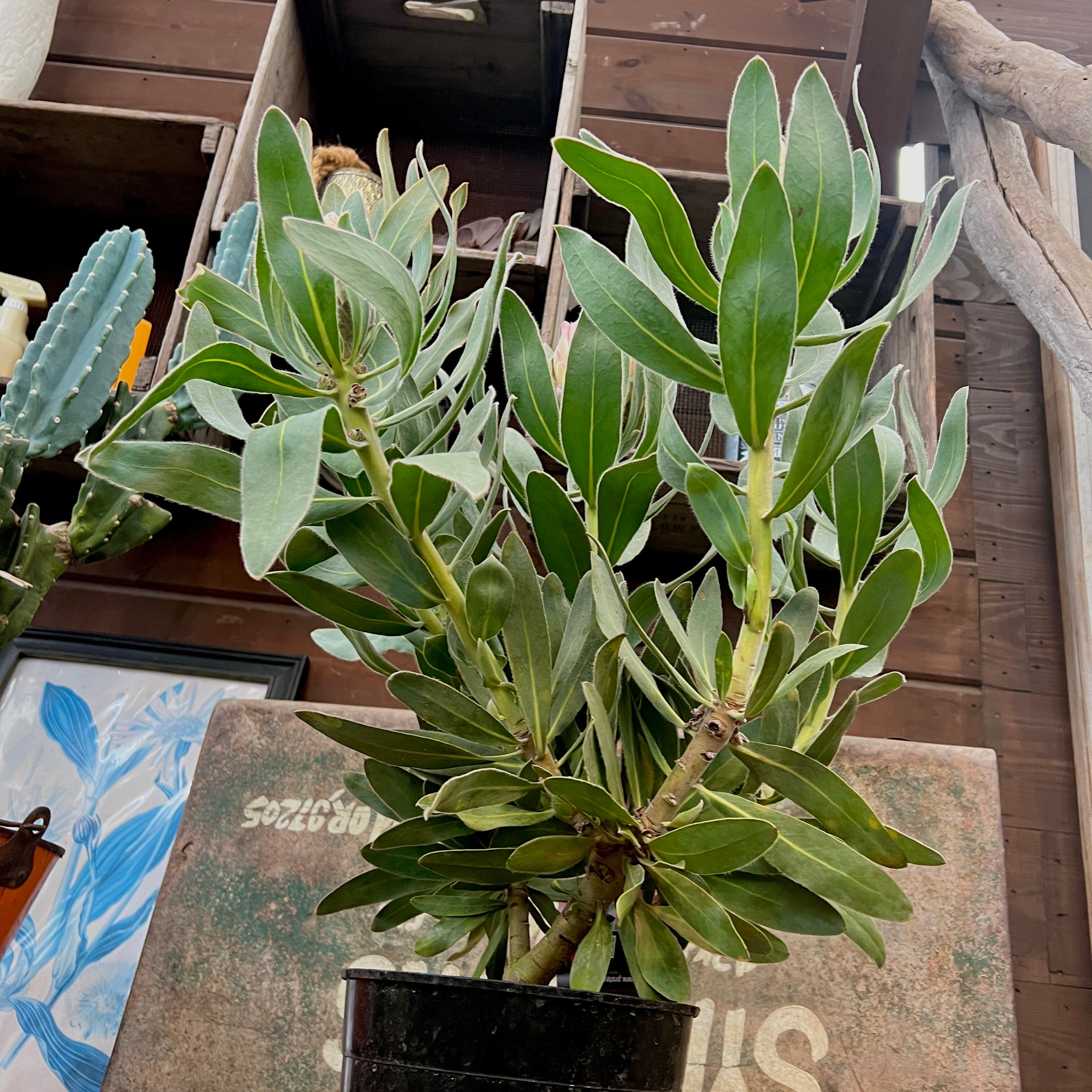 ふわふわとした高級感のある花と、シルバーがかった美しい葉っぱが魅力のプロテア。