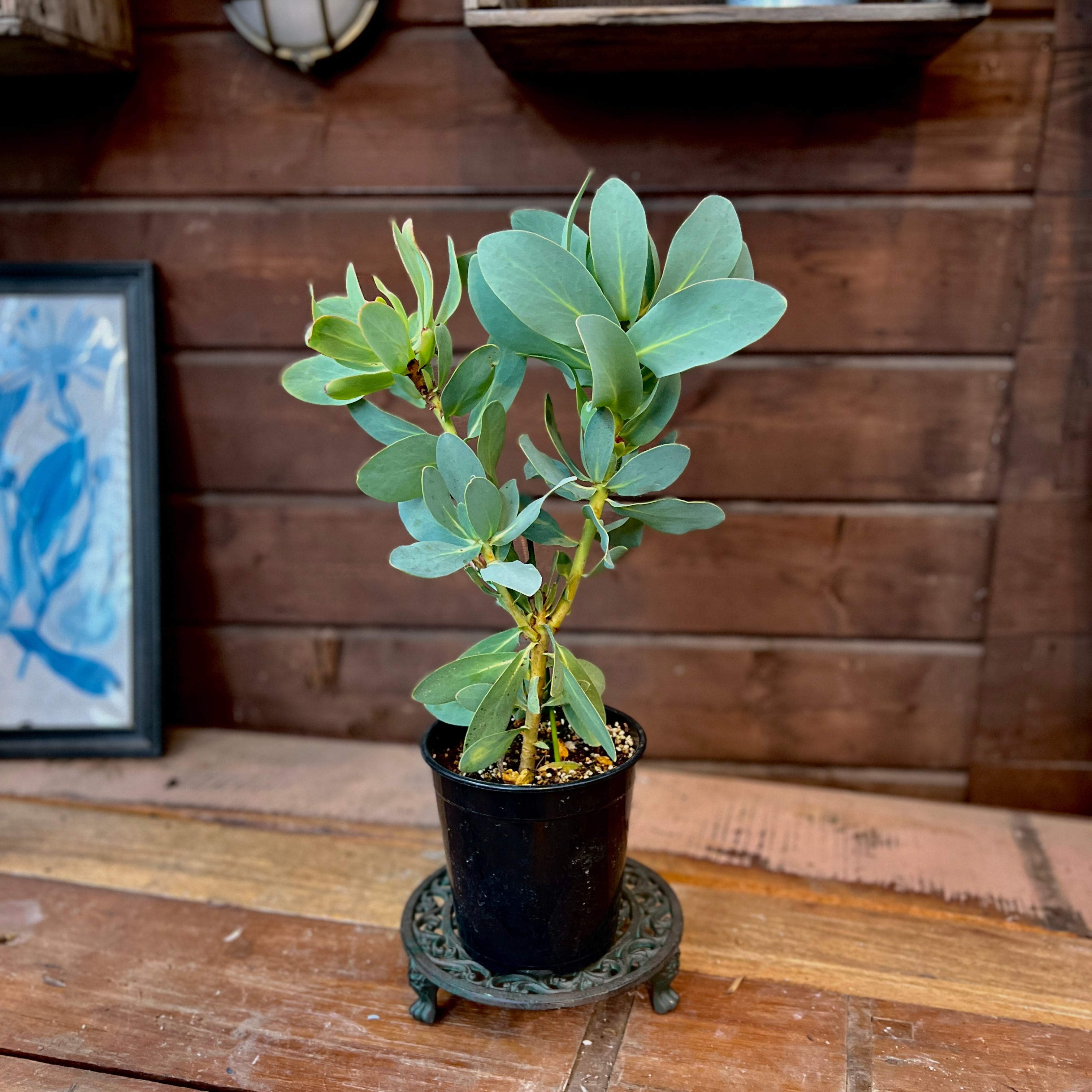 新芽が成長してくるとシルバーっぽくなり、ツルンとしたユーカリの様な葉っぱになります。