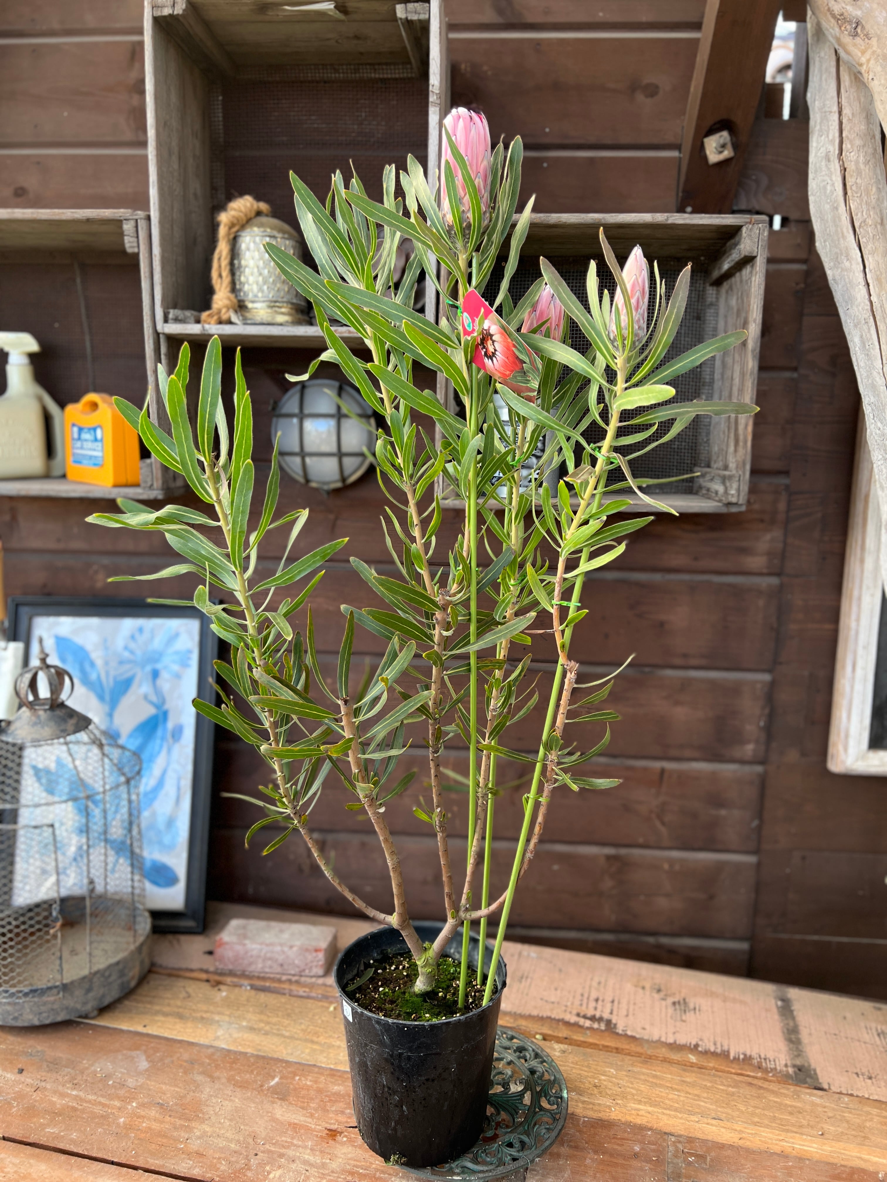 ピンク色のふわふわとした高級感のある花が咲くとても珍しいプロテア。