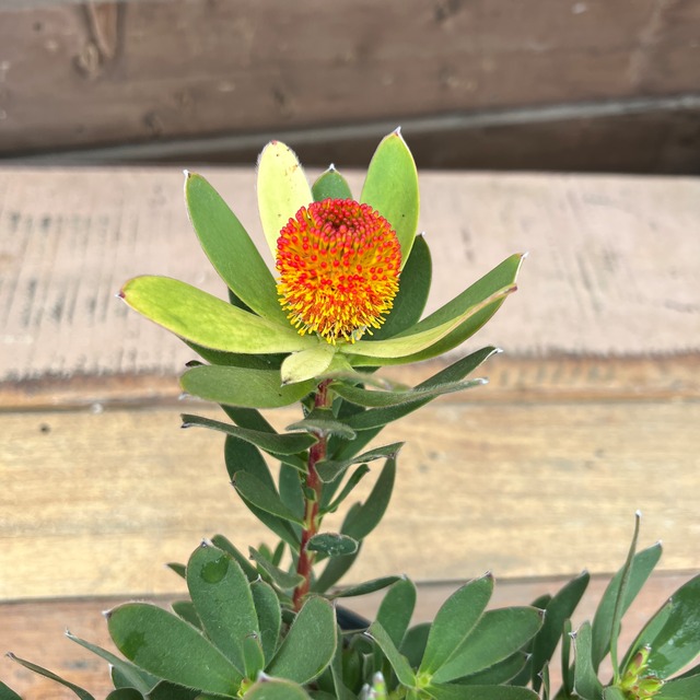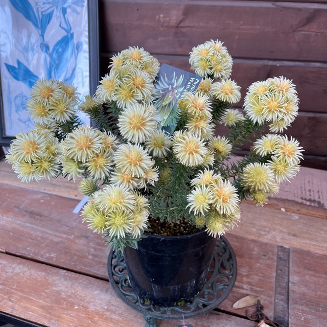 黄色い大輪の花を咲かせる可愛いリューカデンドロン。