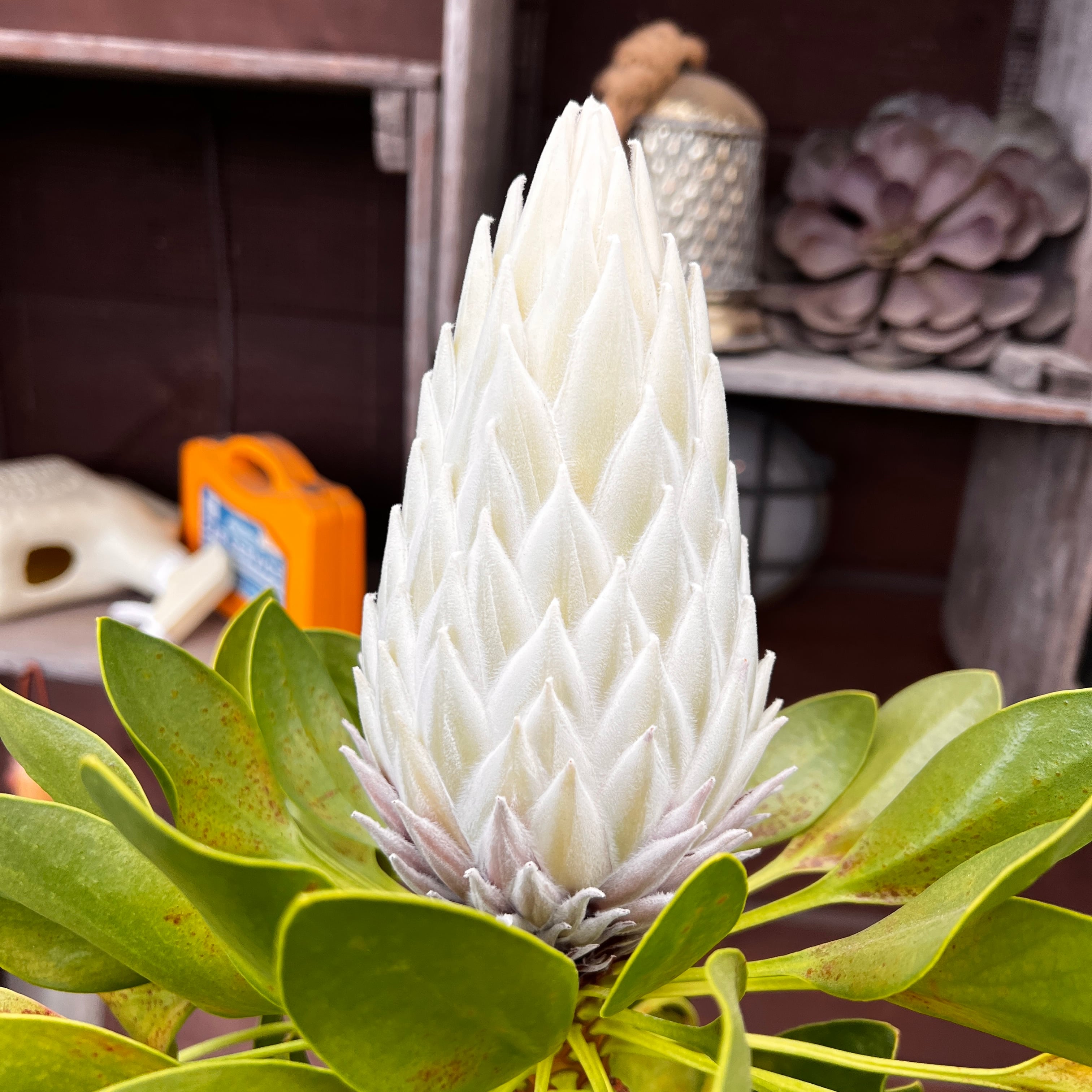 純白の圧倒的に美しい花を咲かせるプロテア。