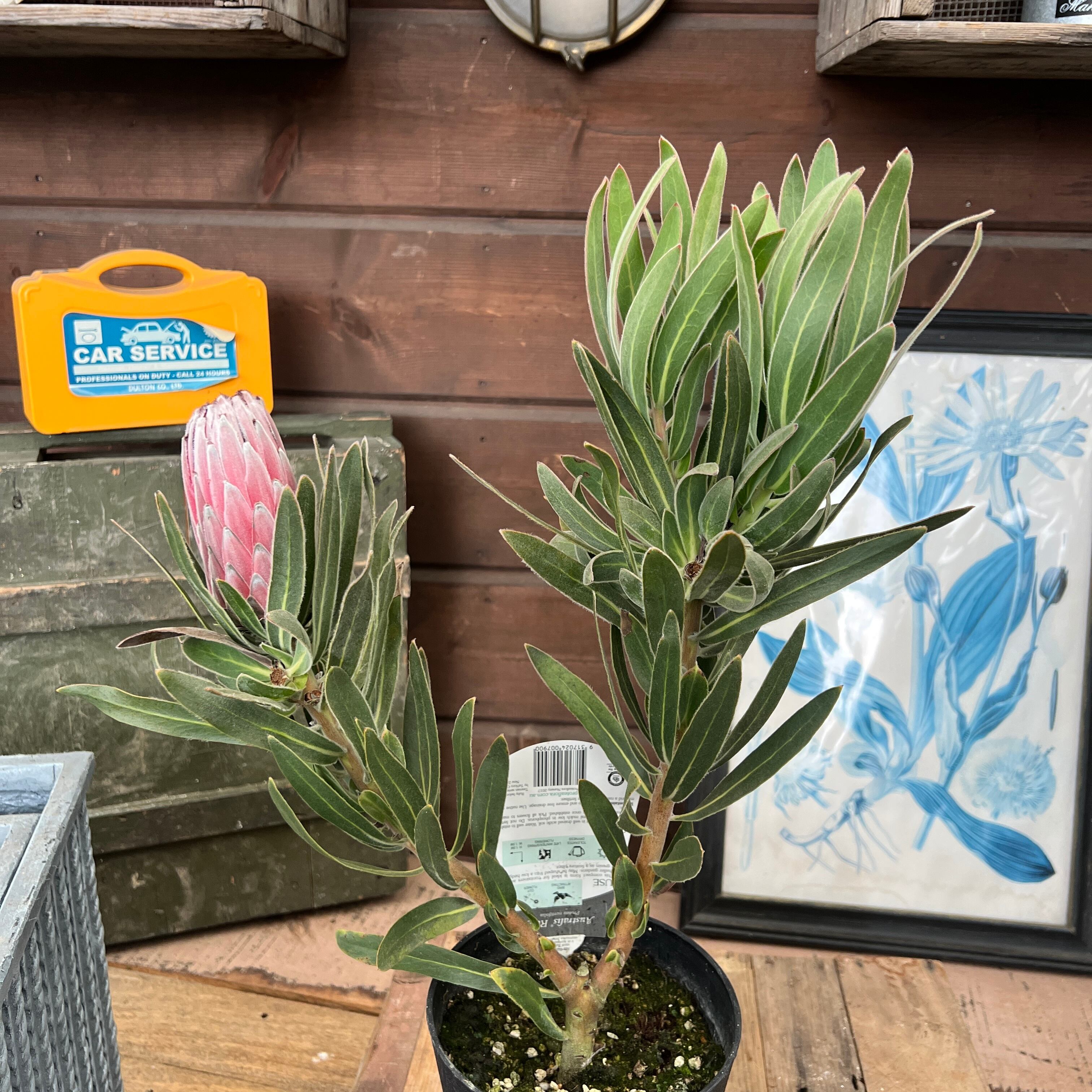 ピンク色のふわふわとした高級感のある花が咲くとても珍しいプロテア。