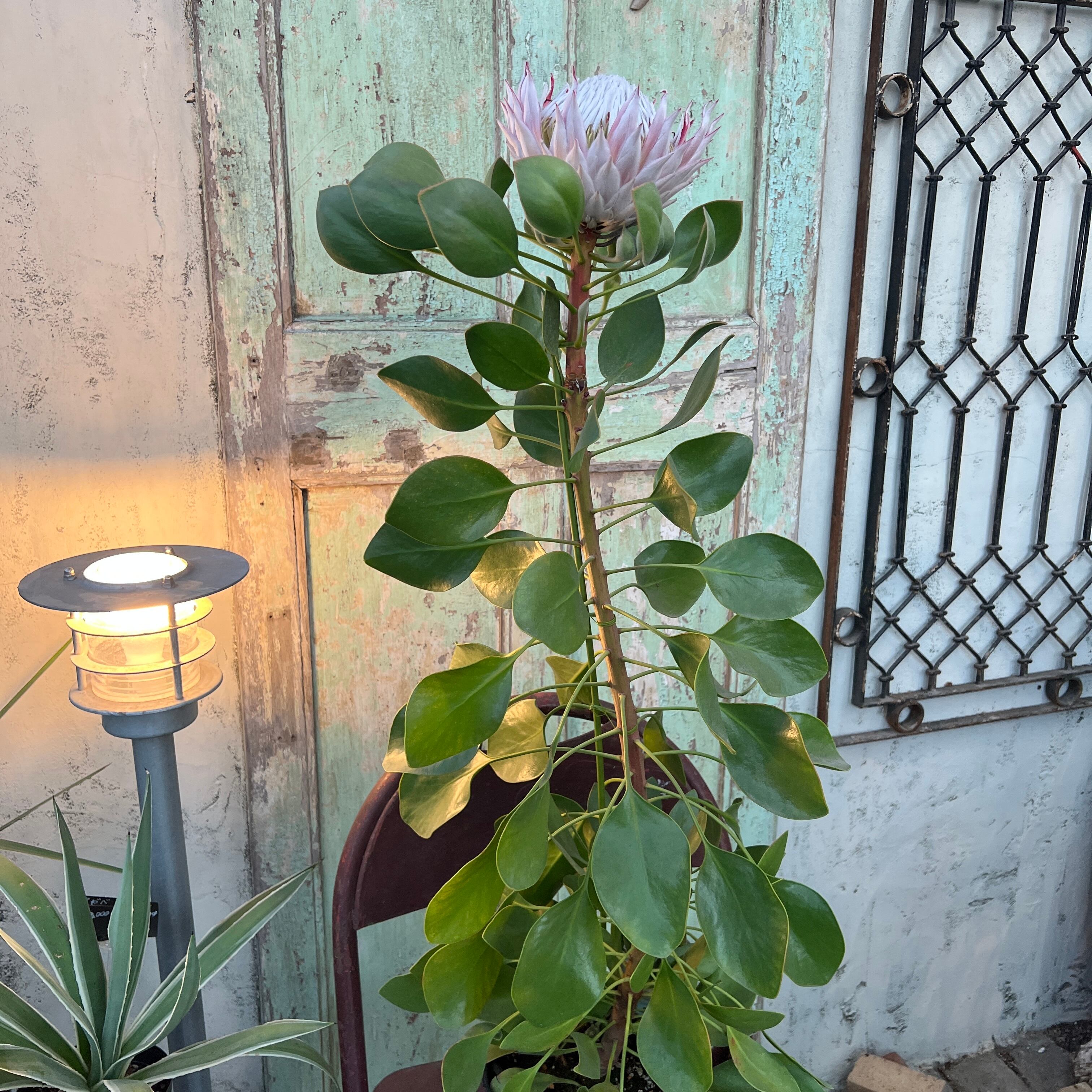 薄いピンク色の圧倒的に美しい花を咲かせるプロテア。