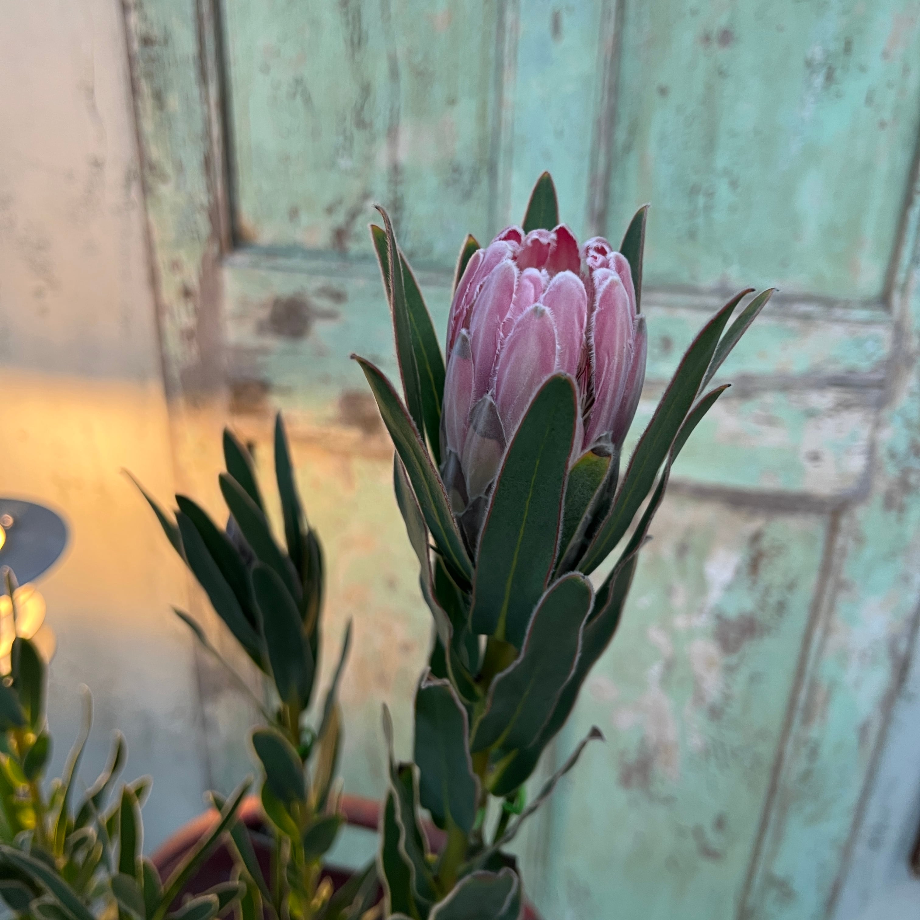 ふわふわとした高級感のある花と、シルバーがかった美しい葉っぱが魅力のプロテア。