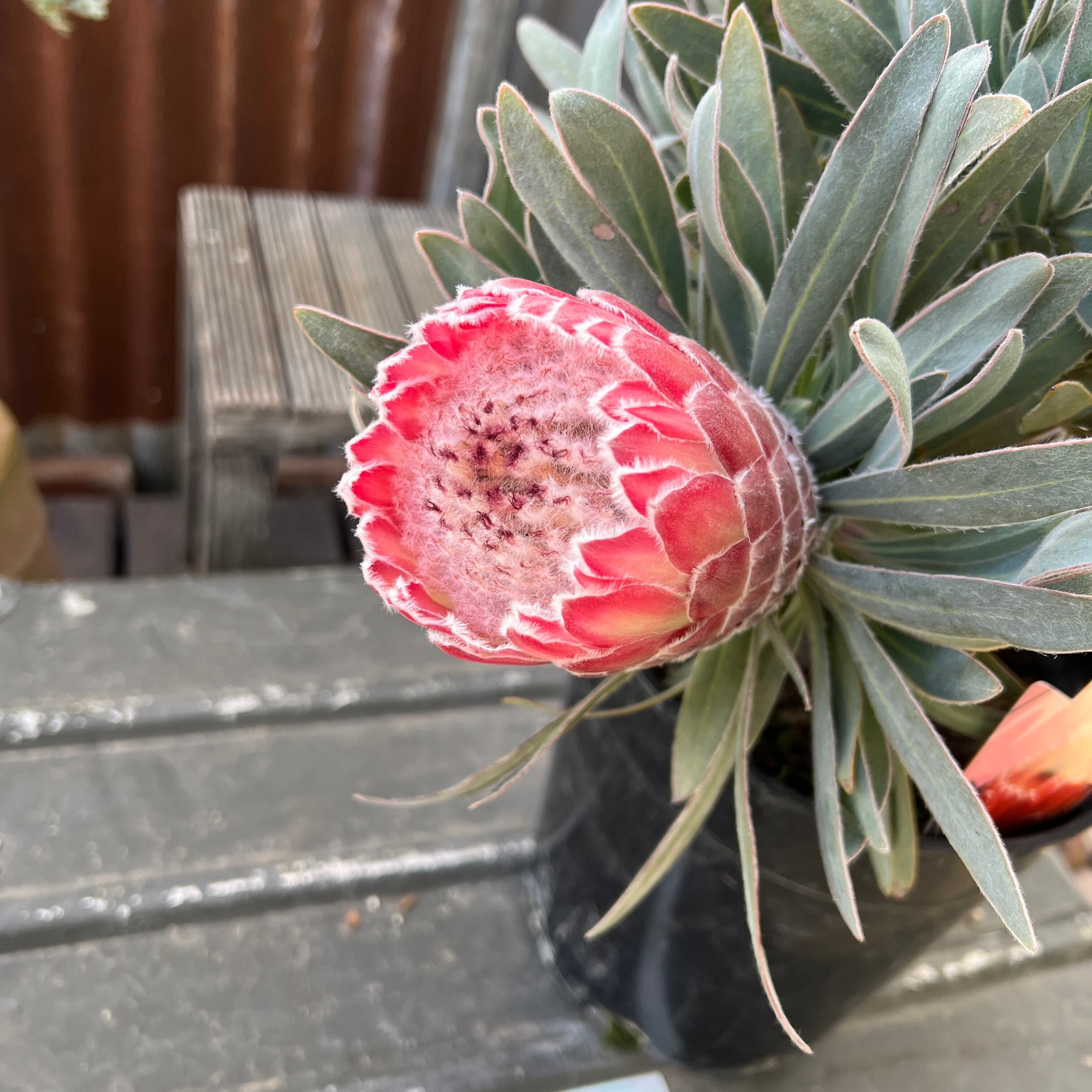 ふわふわとした高級感のある花と、シルバーがかった美しい葉っぱが魅力のプロテア。