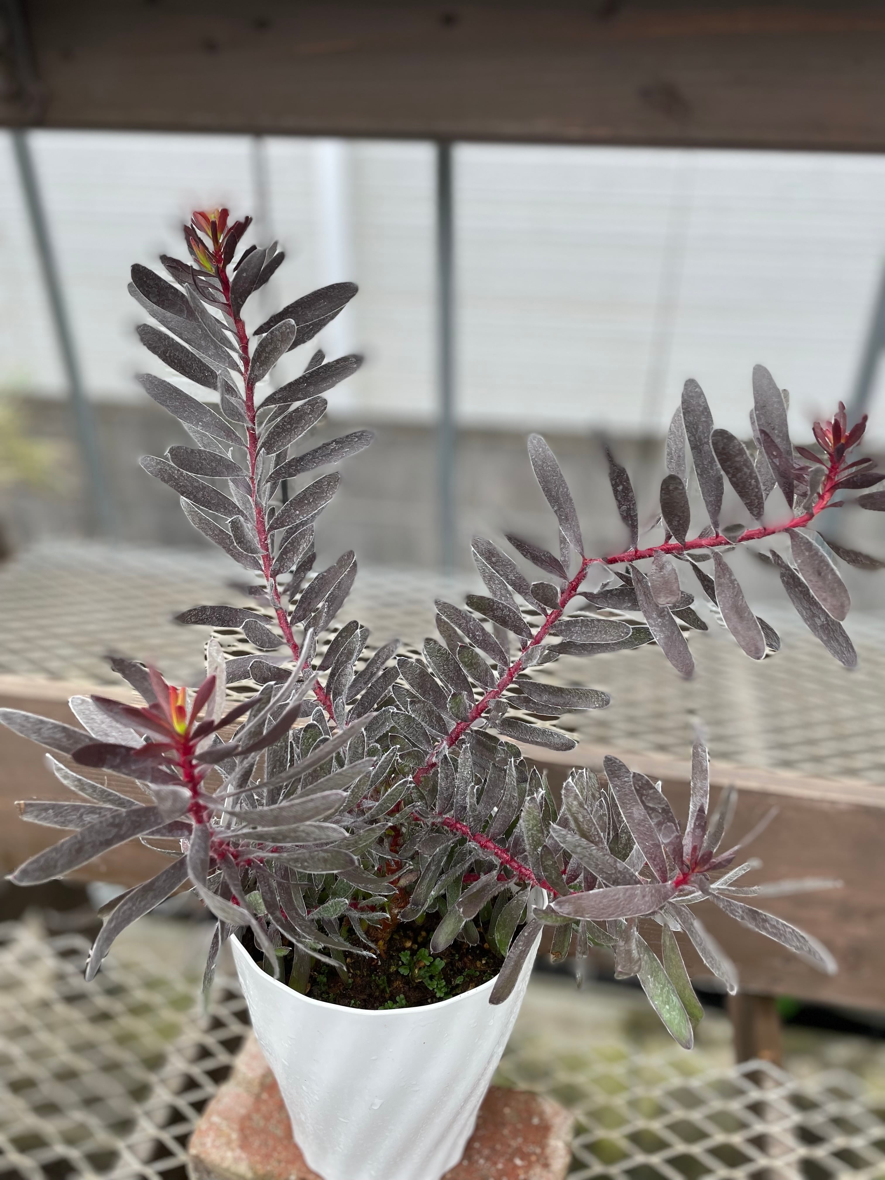 黒リューカデンドロンとも言われていて、葉が黒いのが1番の特徴。